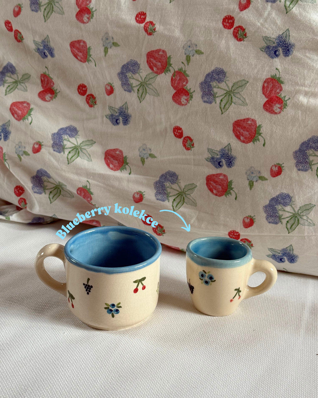 Ručně vyráběný keramický hrnek Blueberry s kapacitou 65 ml v sobě spojuje jemnost tradiční keramiky a osobní dotek ruční práce. Je vyrobený v chráněné dílně a zdobený ručně malovanými motivy drobných bobulí a květů. Vnitřní část hrnku je glazovaná do uklidňující modři, která krásně kontrastuje s přírodní barvou keramiky. Ideální na espresso ☕️ – malý, originální hrnek, který promění každé kávové ráno v příjemný rituál.