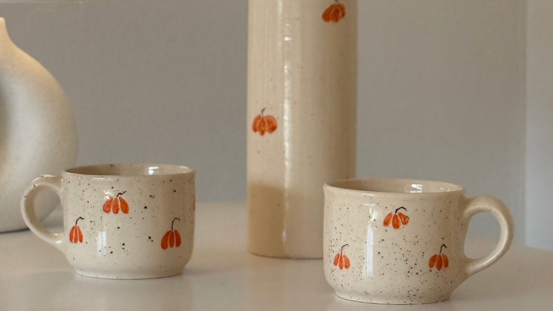 Elegantní ručně vyrobená váza z kolekce Pumpkin, která vnese do interiéru jemnost podzimních tónů. Na krémovém povrchu s drobnými tmavě hnědými tečkami se opakují ručně malované dýně, typické pro tuto kolekci. Každý kus vzniká v chráněné dílně, kde jej s pečlivostí tvoří lidé s postižením.